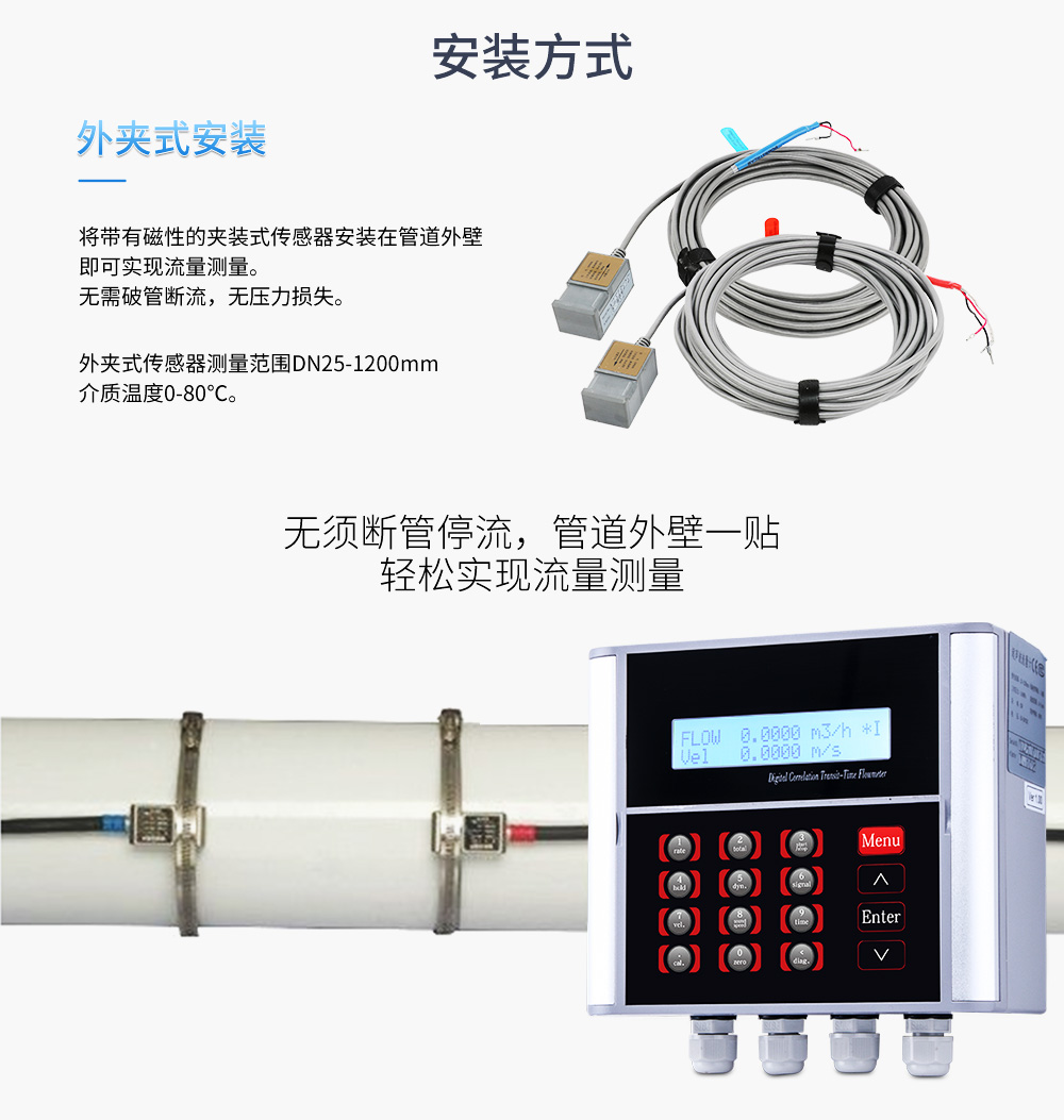 外夾式或者管段式超聲波流量儀表是以"速度差法"為原理,測量圓管內(nèi)液體流量的儀表。它采用了先進的多脈沖技術(shù)、信號數(shù)字化處理技術(shù)及糾錯技術(shù),使流量儀表更能適應(yīng)工業(yè)現(xiàn)場的環(huán)境,計量更方便、經(jīng)濟、準確。產(chǎn)品達到國內(nèi)外先進水平,可廣泛應(yīng)用于石油、化工、冶金、電力、給排水等領(lǐng)域。